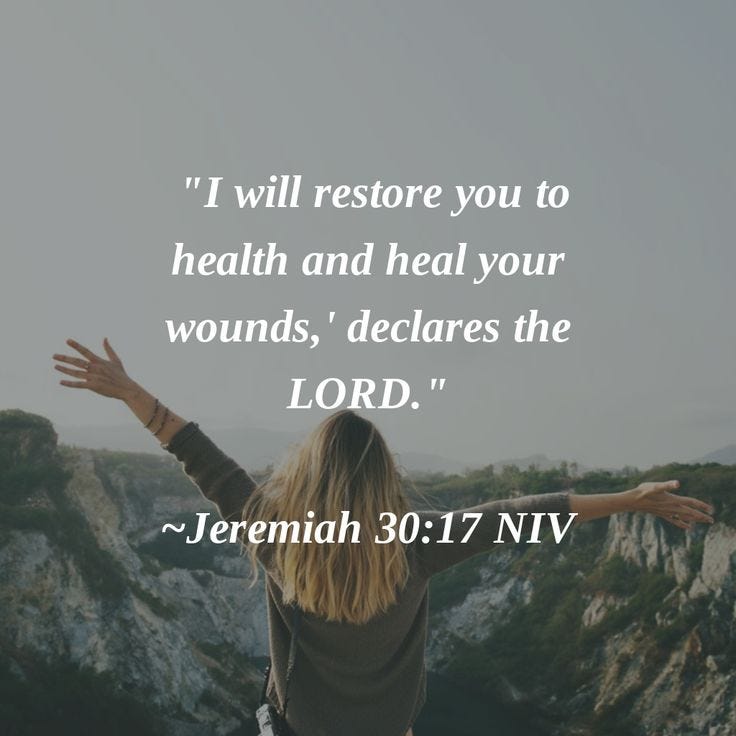 The Lord will restoreJeremiah 30:17 Healing ScriptureGerryGarciaJun 10, 20251ShareBut I will restore you to health and heal your wounds,’declares the Lord,‘because you are called an outcast, Zion for whom no one cares.’ - Jeremiah 30:17 NIVPreviousNext